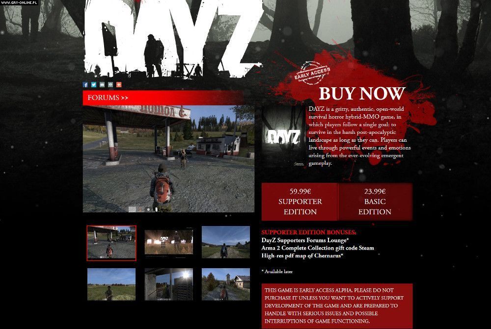 Zgodnie z wcześniejszymi informacjami, studio Bohemia Interactive udostępniło właśnie wczesną wersję alfa samodzielnej edycji popularnego moda DayZ. Tytuł dystrybuowany jest w programie Steam Early Access, co oznacza, że kupiona gra będzie stopniowo poprawiana i ulepszana przez deweloperów, aż do czasu jej oficjalnej premiery. Deweloperzy ostrzegają więc, że gra jest niedopracowana i pełna błędów. Tytuł można zamówić bezpośrednio na Steamie lub stronie producenta w cenie 23,99 euro (ok. 96 zł). Plik z grą waży około 5,2 GB.