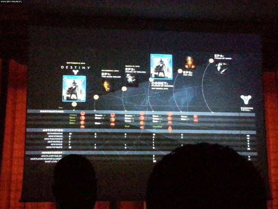 Do Sieci trafiły właśnie nieoficjalne wieści precyzujące to, czego fani Destiny mogą spodziewać się w najbliższej przyszłości. Jeden z użytkowników Reddita, dotarł do zdjęć wykonanych w siedzibie Bungie w październiku 2014 roku i rozszyfrował znajdujące się na nim informacje. Z mało wyraźnej fotografii udało się wyczytać m.in. datę premiery House of Wolves, potwierdzić istnienie ogromnego rozszerzenia o nazwie Comet: Plague of Darkness, dowiedzieliśmy się także, że szykowane są dwa kolejne, mniejsze dodatki. Poniżej znajdziecie w telegraficznym skrócie to, co pojawi się w nadchodzących DLC.