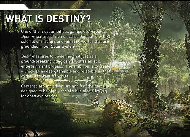 Nie wiadomo, czy Destiny należeć będzie do gatunku MMO, ale opcje sieciowe i społecznościowe odegrają istotną rolę. Bungie chce, aby gra pozwalała w łatwy sposób na wspólne z przyjaciółmi eksplorowanie świata i odkrywanie jego sekretów. Warto zauważyć, że jedna z grafik dołączonych do dokumentów zawiera logo konsol Xbox 360 i PlayStation 3. Jest to informacja o tyle ciekawa, że kilka miesięcy temu ujawniono szczegóły umowy między deweloperem a firmą Activision. Według niej w planach są cztery odsłony serii, z których pierwsza ma ukazać się tylko na konsole Microsoftu (zarówno na Xboksa 360, jak i jego następcę). Najnowszy wyciek sugeruje, że w premierową odsłonę cyklu będą mogli zagrać również posiadacze innych platform.