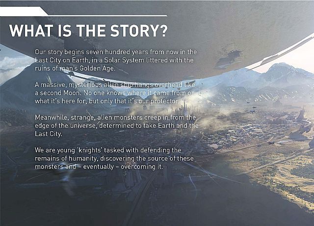 Bungie ma ambitne plany odnośnie uniwersum, w którym toczy się akcja gry. Ma ono być równie bogate i pobudzające wyobraźnię jak to z Gwiezdnych Wojen. Jednocześnie autorzy chcą trafić do szerszej publiczności niż w przypadku Halo i poważne wojenne klimaty zastąpione zostaną atmosferą mitycznej przygody.