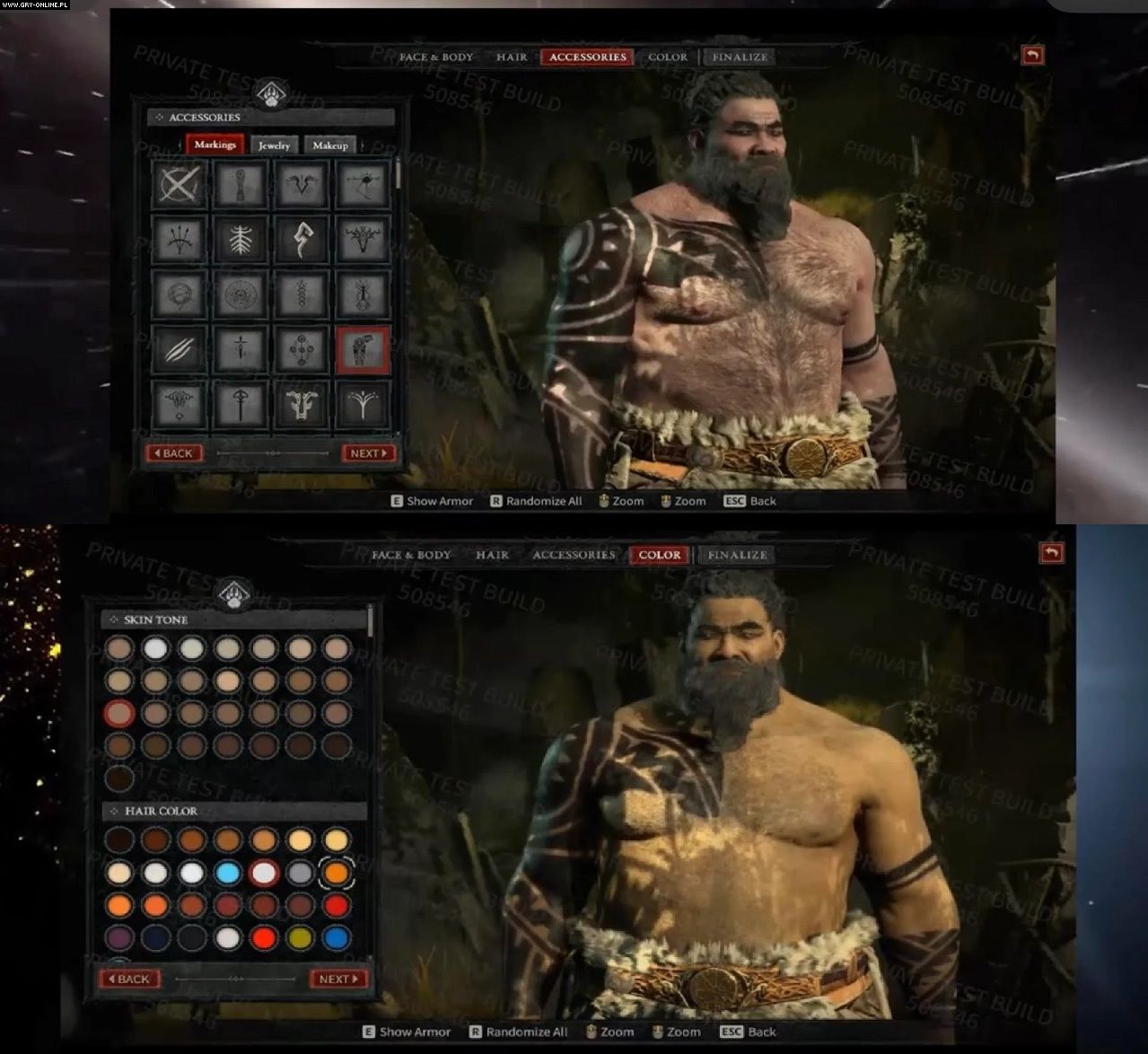 Następnie czeka nas określenie płci i wyglądu bohatera. Jak możecie zauważyć na poniższej grafice, w menu nie ma suwaków – które pojawiły się choćby w Diablo Immortal – umożliwiających np. dostosowanie rysów twarzy protagonisty. W odróżnieniu jednak od Diablo III, będziemy mogli zdecydować o nich, wybierając jedną z przygotowanych przez twórców tekstur.
