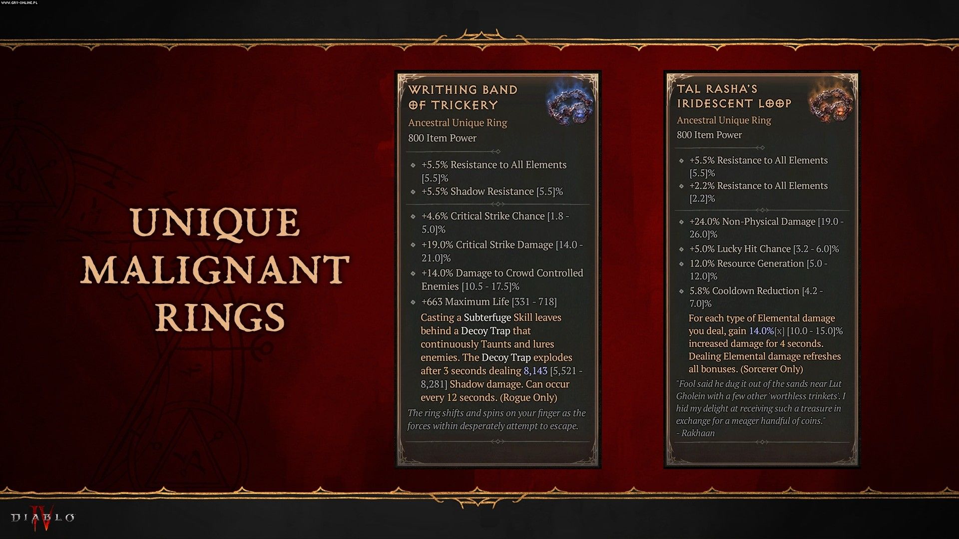 Te nowości zobaczymy już pojutrze. Wraz z wersją 1.2.2 w Diablo IV pojawi się pięć plugawych pierścieni, które nawiązują do pierwszego sezonu (Plugawców). Każdy z nich dedykowany jest jednej z dostępnych klas postaci, znacznie wpływając na ich zdolności.