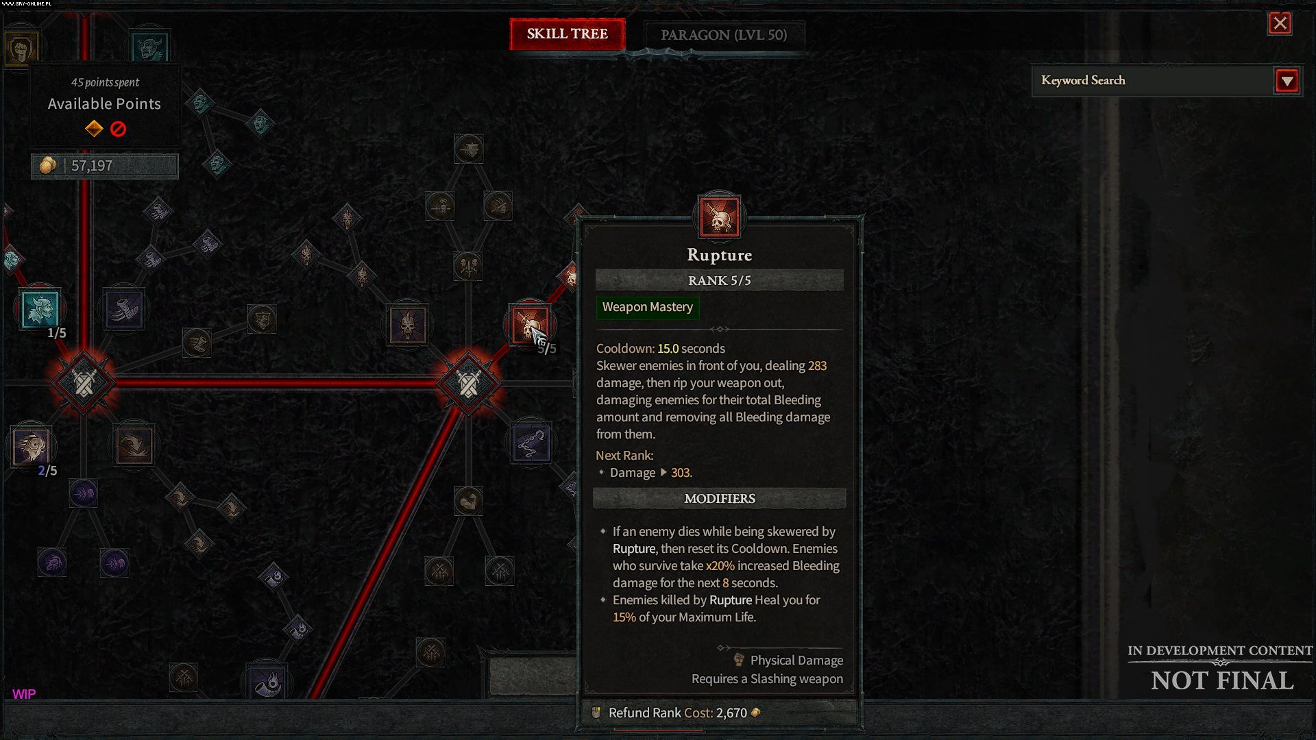 JS: Dostajesz 1 punkt umiejętności na poziom aż do 50 poziomu. A oprócz tego możesz zdobyć dodatkowe punkty poprzez system reputacji. Myślę, że jest to kolejne 15 lub więcej, nie jestem w stanie dokładnie określić. Maksymalny poziom w grze to 100, a gdy awansujesz z 50 do 100, to korzystasz z endgame’owego sytemu paragona. Wtedy zdobywasz 4 punkty na poziom, a one mogą być użyte w rozległym systemie pozwalającym na jeszcze większe zróżnicowanie i ulepszenie postaci.