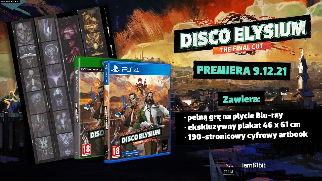 W pudełku znajdziemy – oprócz Disco Elysium z polskim tłumaczeniem na płycie Blu-ray – także niewielki plakat oraz kod pozwalający na pobranie 190-stronicowego cyfrowego artbooka. The Final Cut ma kosztować 179,99 złotego na wszystkich konsolach (tj. PS4 i XOne; na PS5 i XSX/S gra będzie dostępna dzięki darmowej aktualizacji). W planach jest też wydanie na Nintendo Switcha, ale na to poczekamy do 2022 roku.