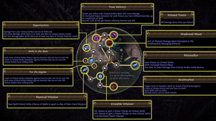 Ponadto wersja 3.27 przyniesie ze sobą długo wyczekiwane odświeżenie klasy Assassin. Twórcy zaprezentowali już jej drzewko Ascendancy wraz z opisami głównych punktów. Gracze zwrócili szczególną uwagę na zdolność „Infused Toxins”, która sprawia, że wszystkie obrażenia z trafień mogą wywoływać zatrucie.