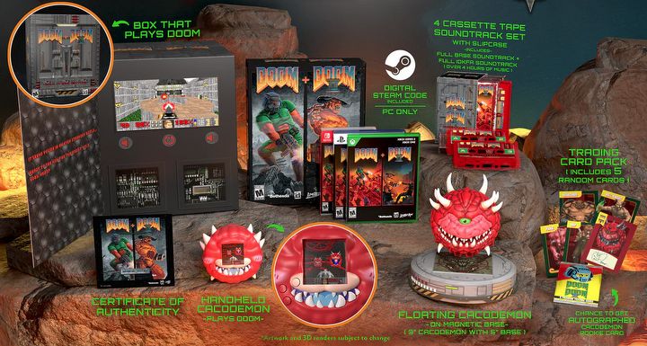 Zdecydowanie największą ciekawostką są jednak dwa przedmioty, które pozwalają nam zagrać w Dooma. Pierwszym z nich jest pudełko. Zostało ono wyposażone w specjalny ekran, gdzie wyświetlana jest produkcja. Drugim elementem jest niewielka zabawka odwzorowująca Cacodemona. Na pierwszy rzut oka może ona przypominać Tamagotchi.