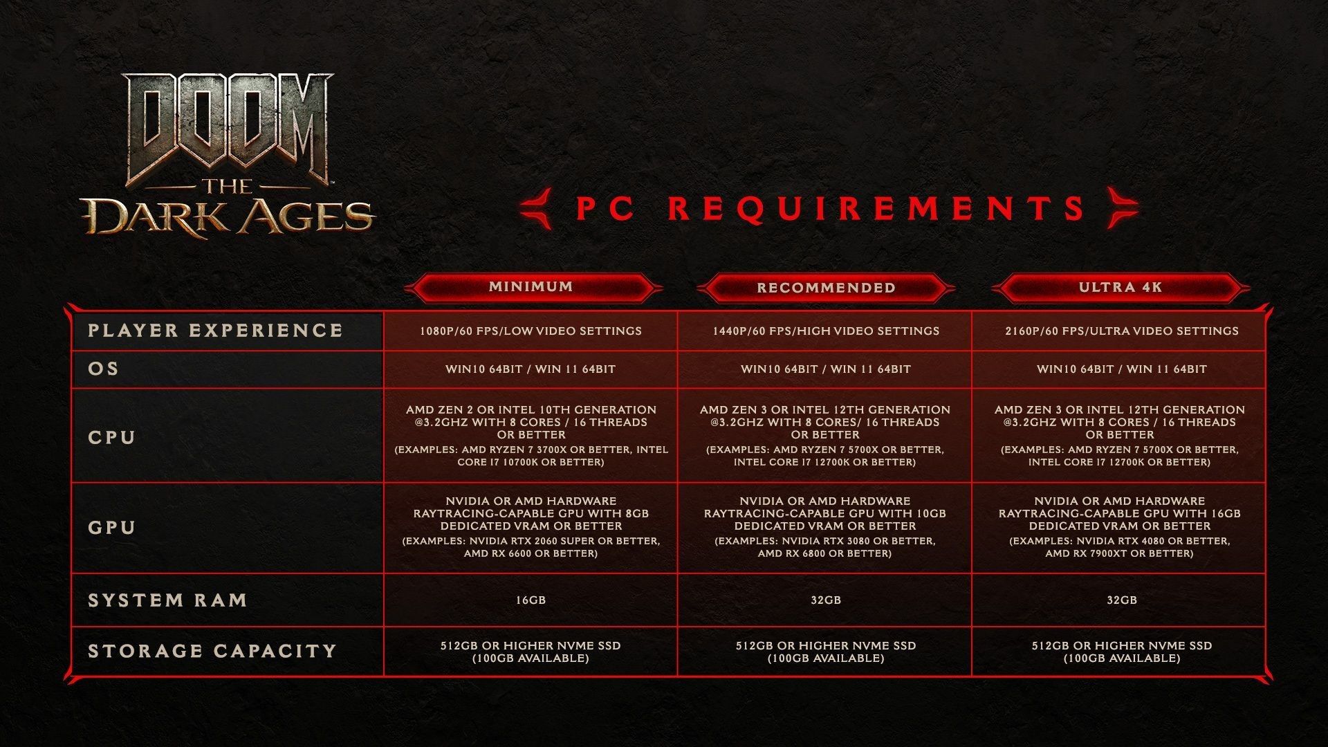 Ponadto poznaliśmy wymagania sprzętowe Doom: The Dark Ages na PC. Sprawdzicie je poniżej.
