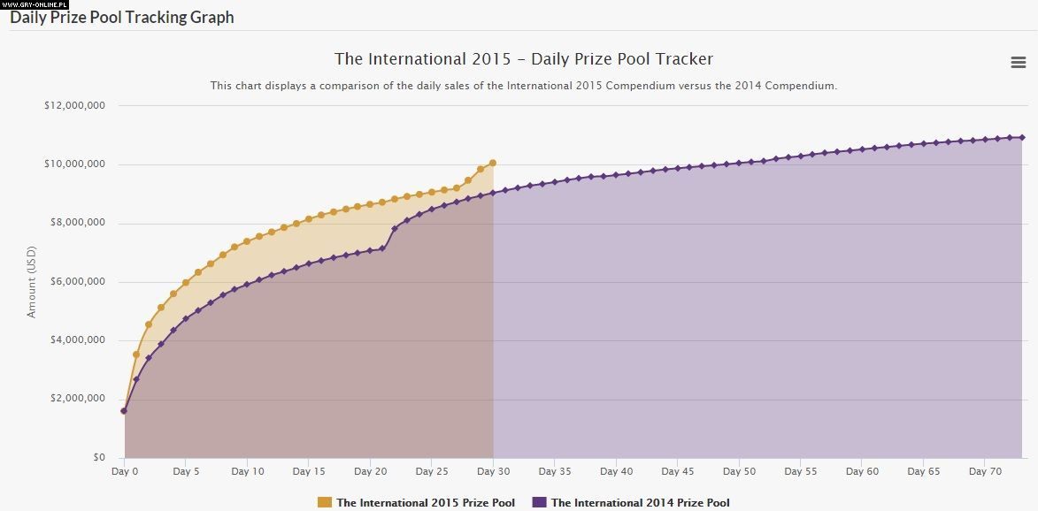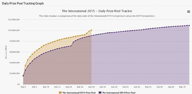Na początku sierpnia odbędzie się turniej The International 2015 w grę Dota 2. Pula zawodów przekroczyła już 10 mln dolarów dzięki sprzedaży wirtualnego kompendium. Kwotę tę udało się uzbierać w ciągu 30 dni, czyli aż o 20 dni szybciej niż w 2014 roku.