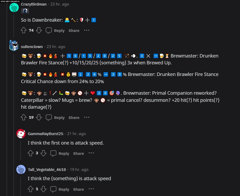 Jednakże część informacji była dość enigmatyczna, co doprowadziło do zabawnych przemyśleń fanów. Na przykład Brewmaster (który został ukazany za pomocą emoji piwa i niedźwiedzia) doczekał się zmiany w postaci tarczy i cyfry 1 – pewien gracz uznał to za przemianę tego bohatera w nieśmiertelną postać. Inną niejasnością był dla niektórych Doom i znajdujące się przy nim emotki wyciszenia i szpitala (Doom już nie jest wyciszony i uniemożliwia leczenie?).