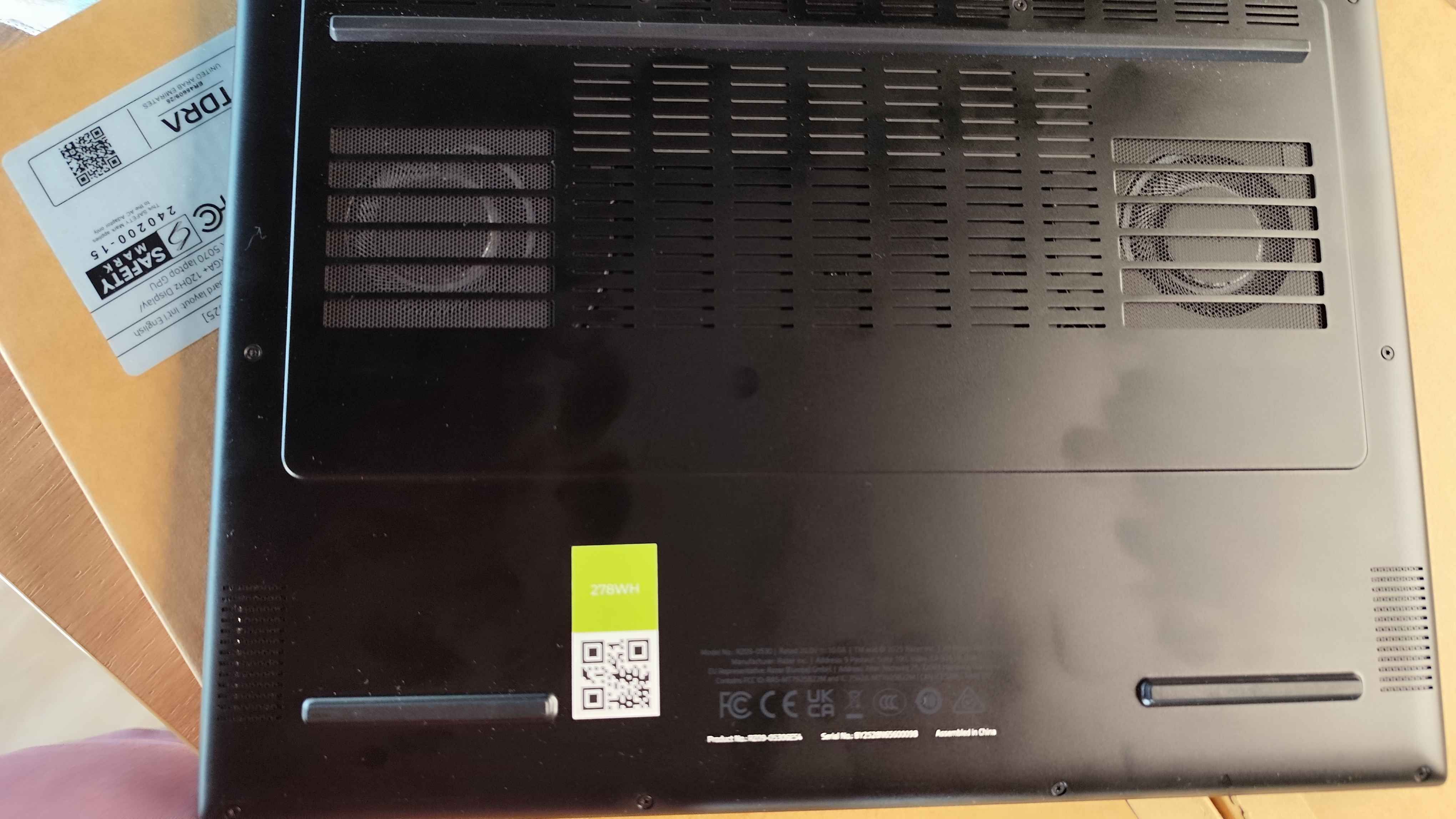 Wentylatory tylko pod spodem mają tunele powietrzne, nic dziwnego, że łatwo się grzeje. I łapie wszelkie odciski.Źródło: Fotografia własna.