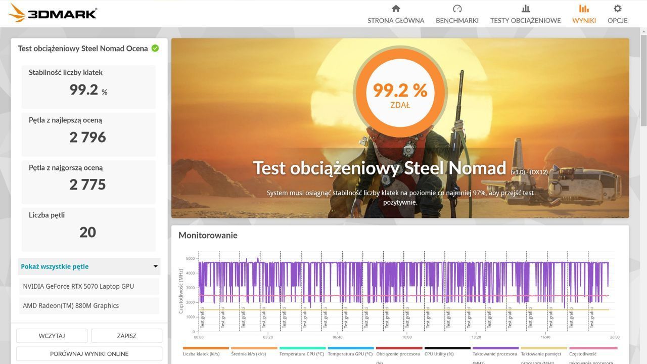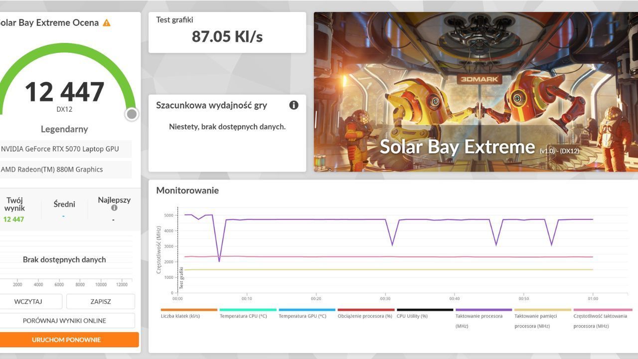 Niestety pomimo licznych zalet ma on jedną, przepotężną wadę – kartę graficzną RTX 5070 latpop GPU. Nie ważne jakbym chciał uargumentować lub bronić tej kwestii, 8 GB pamięci VRAM w laptopie gamingowym z wyższej półki jest nie do obronienia. Zwłaszcza w modelu, który ma w nazwie 2025. To ogromna i praktycznie główna wada tego sprzętu. Pod każdym innym względem wyróżnia się on pozytywnie, ale ta feralna karta…
