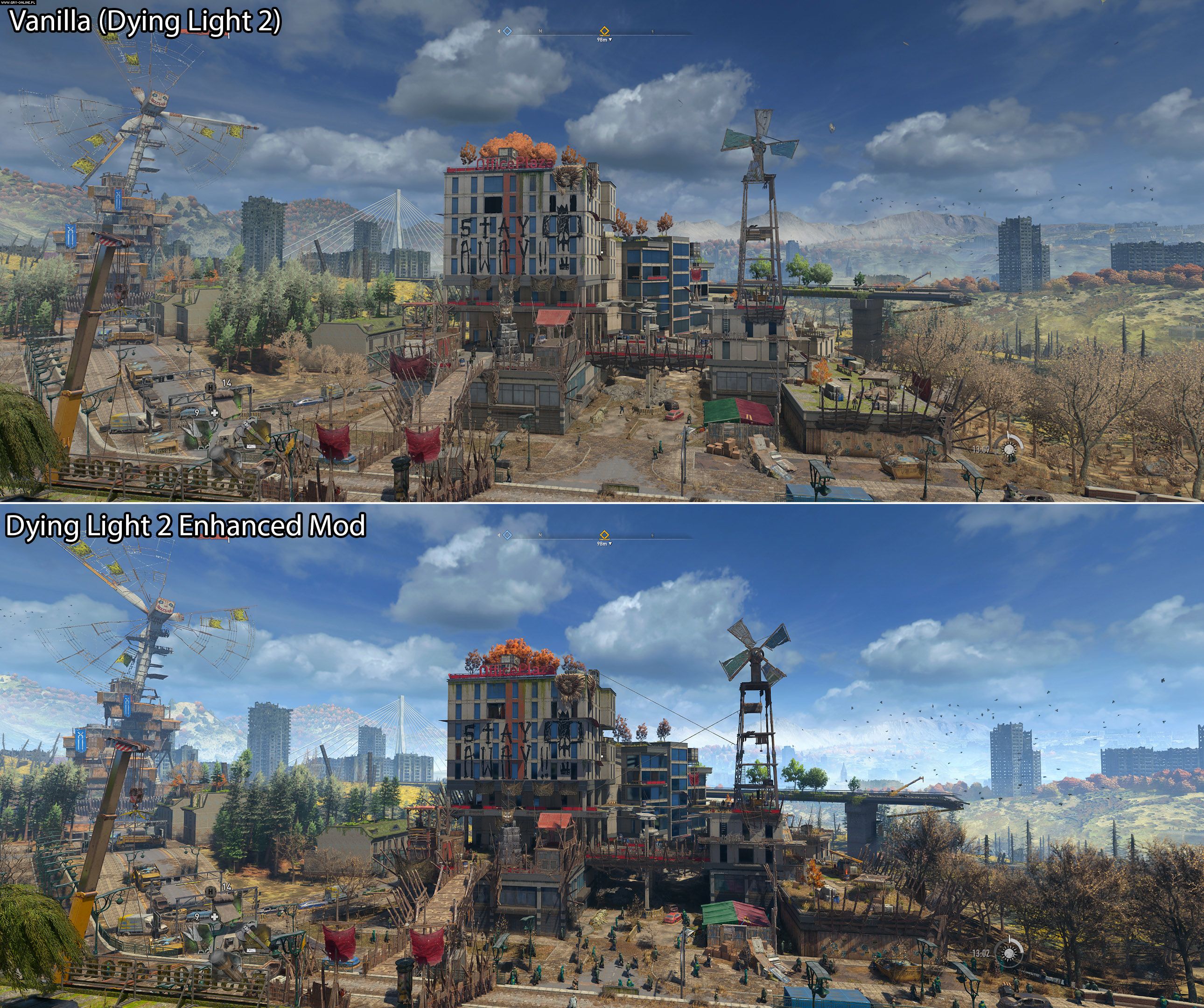 Autor udostępnił grafikę, porównującą wersję standardową gry z edycją z zainstalowanym modem:
