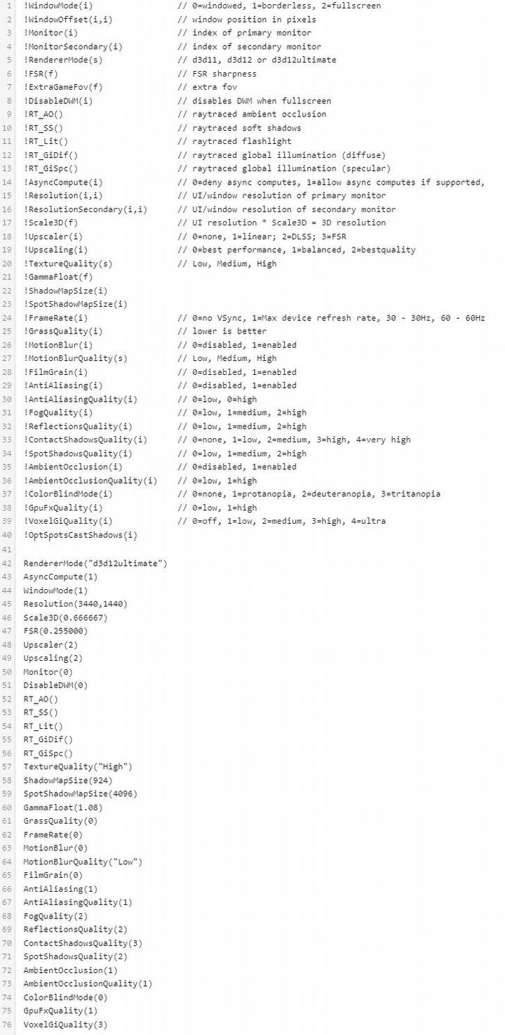 W dalszej części menu określimy także jakość okluzji otoczenia (brak, niska lub wysoka), oświetlenia globalnego, odbić oraz mgły – od niskiej, przez średnią, do wysokiej. Wybrane przez nas ustawienia zapiszą się zaś w pliku video.ini (patrz: screen poniżej), do którego dotrzemy poprzez: folder użytkownika na dysku systemowym – Dokumenty – katalog „dying light 2” – out – settings.