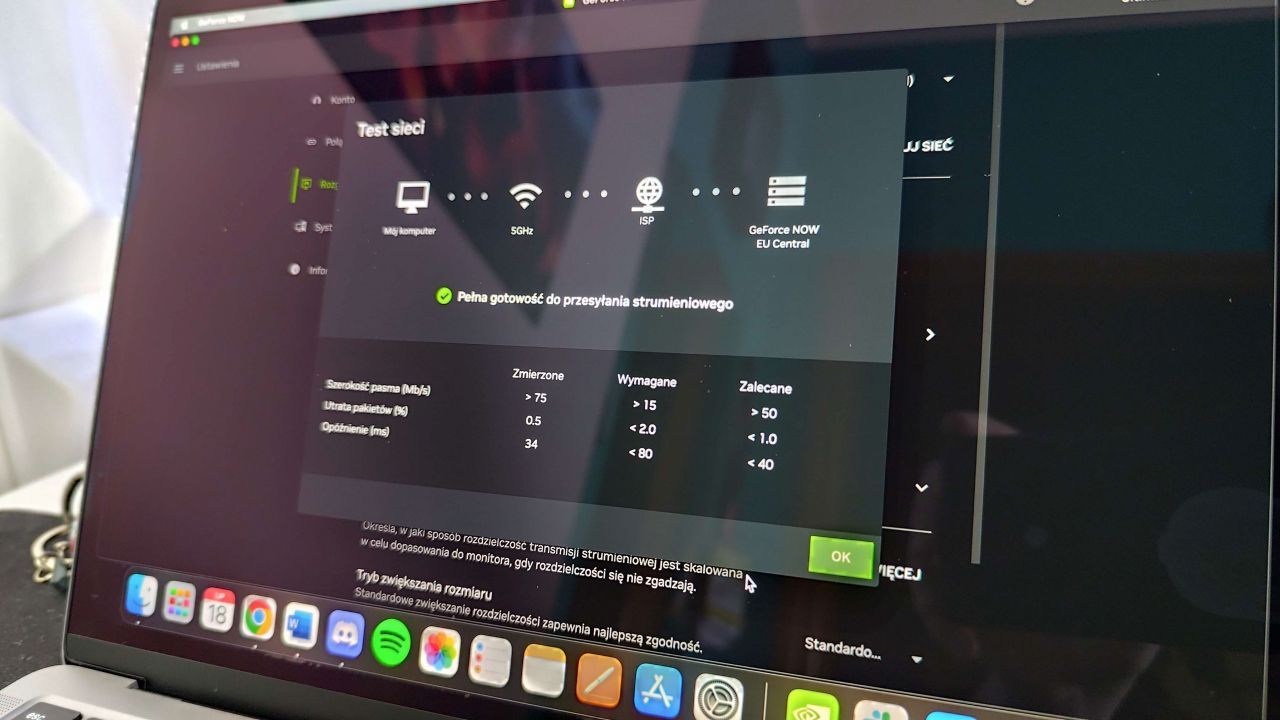Warto jednak dodać, że SpeedTest to jedynie informacja dla użytkownika o posiadanym łączu. Dodatkowo warto przeprowadzić testy z wykorzystaniem aplikacji GeForce NOW, które pozwalają sprawdzić nie tylko to, czy nasze łącze zapewni płynne strumieniowanie, ale także czy połączyliśmy się z prawidłowym (najlepiej najbliższym) serwerem.