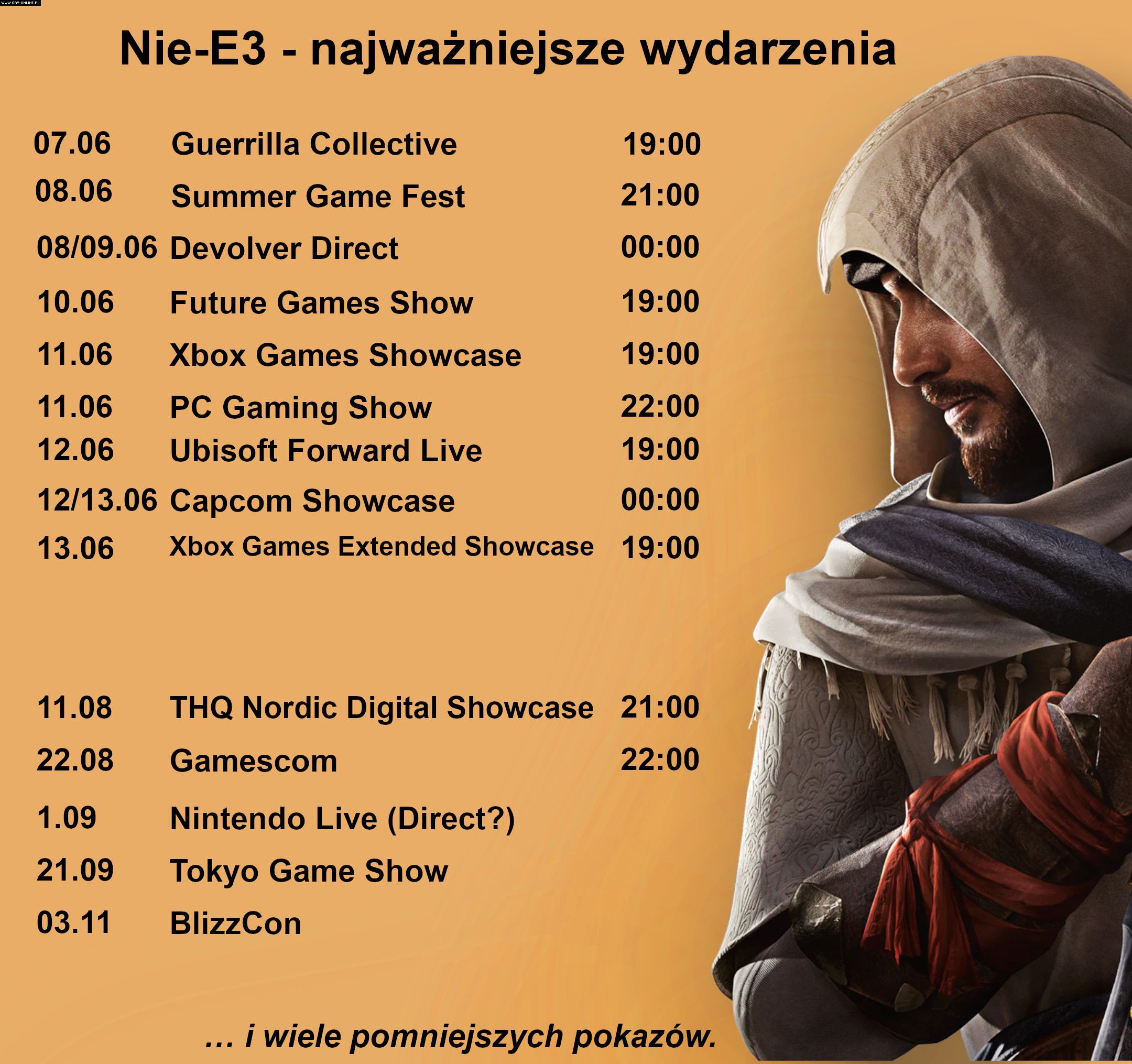 Aktualizacja 10# (14 czerwca): dodano krótkie podsumowania pokazów Guerrilla Collective, Summer Game Fest 2023, Devolver Direct, Future Game Show, Xbox Games Showcase, PC Gaming Show 2023, Ubisoft Forward, Capcom Showcase oraz Xbox Games Showcase Extended.