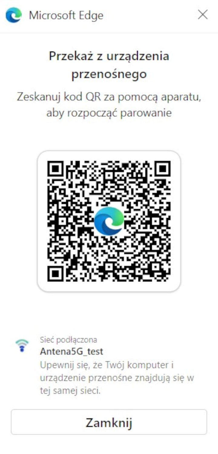 Po jej kliknięciu pojawi się okienko z kodem QR, który musimy zeskanować naszym smartfonem. Uwaga! Zarówno urządzenie mobilne, jak i komputer muszą być podłączone do tej samej sieci Wi-Fi.