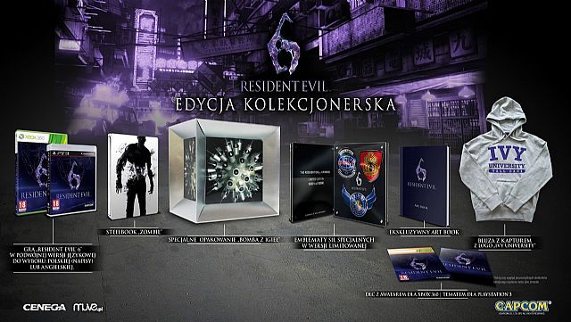 Capcom ujawnił zawartość edycji kolekcjonerskiej gry Resident Evil 6, która trafi w październiku na konsole. Firma Cenega Poland poinformowała, że za pakiet zawierający między innymi bluzę z kapturem oraz artbook zapłacimy 599,99 złotych.