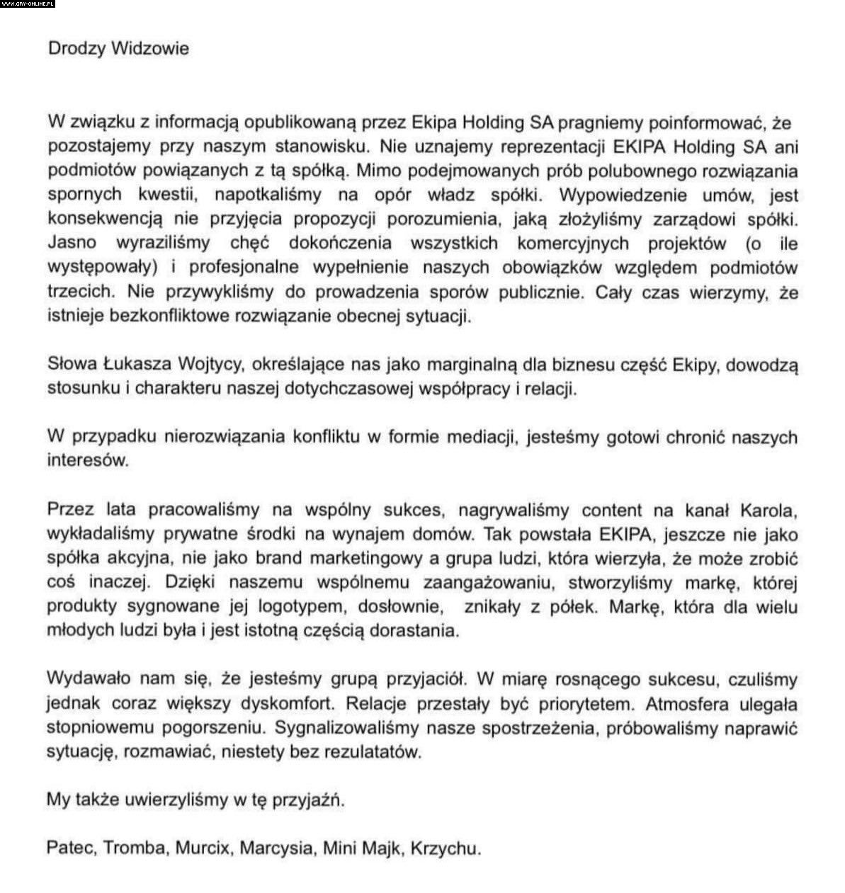 Choć wtedy sytuacja wyglądała po prostu na rozejście się dróg kolegów i koleżanek z pracy, teraz zdaje się być bardziej poważniejszym zatargiem, który może odbić się wizerunkowo na niepowstrzymanej maszynce do robienia pieniędzy, jaką do tej pory była Ekipa.