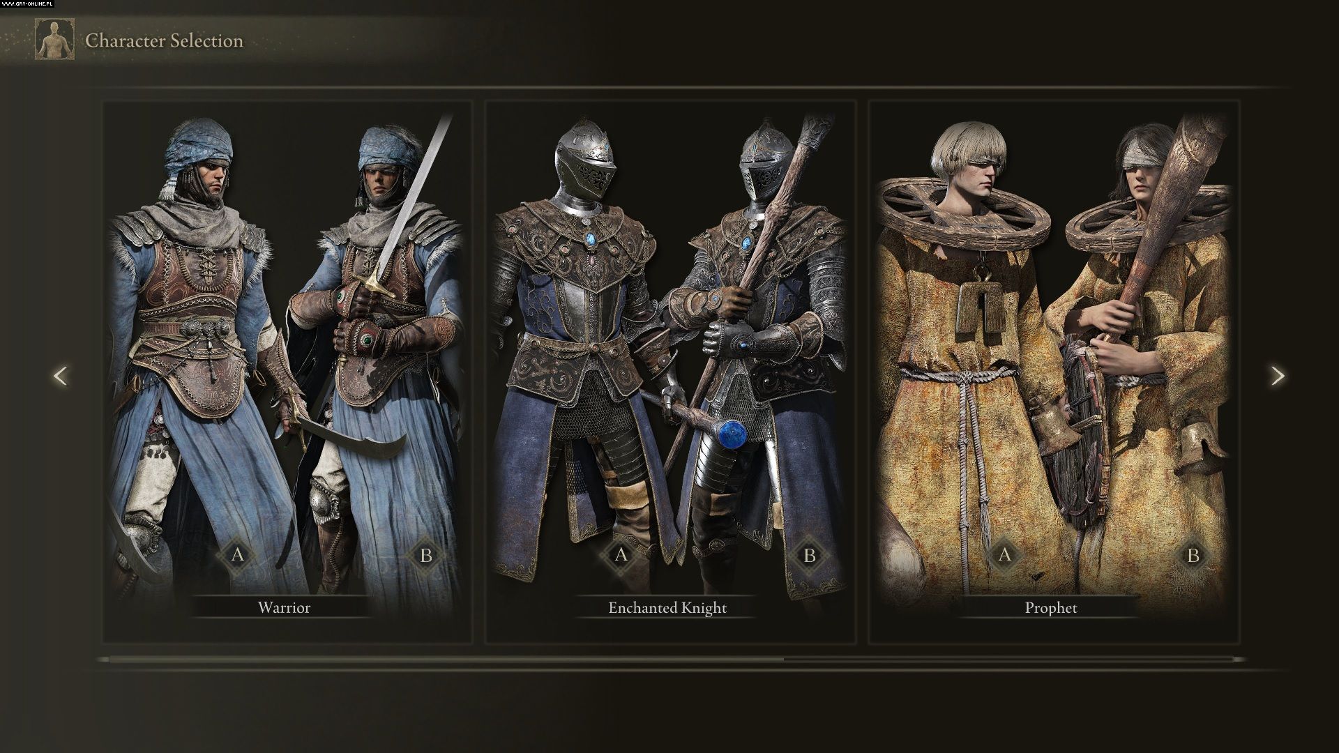Przypominamy, że w najbliższy weekend, a konkretnie od 12 do 15 listopada, odbędą się testy trybu sieciowego Elden Ring. Trzy dni temu na oficjalnym koncie gry w serwisie Twitter pojawił się wpis zawierający grafiki prezentujące pięć postaci, „którymi przekroczymy Morze Mgły”. Będą to: warrior, enchanted knight, prophet, champion i bloody wolf (patrz screeny poniżej). Możemy się domyślać, że są to swego rodzaju klasy postaci, podobne do tych, jakie pojawiły się w Soulsach czy Bloodborne – wybierając jedną z nich, zdecydujemy zapewne o początkowym ekwipunku, broni i statystykach, ale później prawdopodobnie rozwiniemy bohatera (lub bohaterkę) w dowolnym kierunku. W finalnej wersji gry niemal na pewno będzie ich więcej.