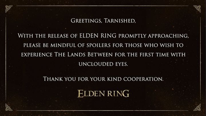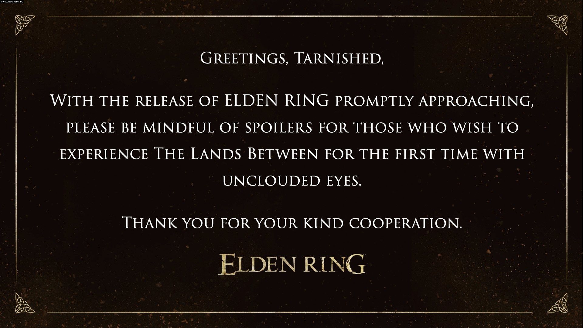 Premiera gry, filmu etc. nie byłaby kompletna, gdyby część osób nie dobrała się do danego tekstu kultury przed oficjalnym debiutem. Tak jest i w tym przypadku, więc Bandai Namco poprosiło, by gracze uważali na spoilery, a osoby już ogrywające Elden Ring powstrzymały się przed ich publikowaniem.