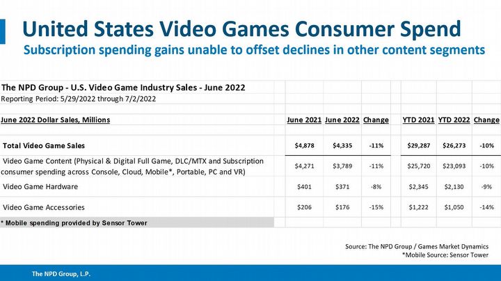 Jest to tym bardziej ciekawe, że całkowite wydatki amerykańskiego społeczeństwa związane z gamingiem zmniejszyły się w czerwcu 2022 roku – względem czerwca 2021 r. – aż o 11% i wyniosły 4,335 mld dolarów. Porównując zaś wyniki finansowe z pierwszych sześciu miesięcy obu analizowanych lat, eksperci odnotowali spadek o 10% (do 26,273 mld dolarów).
