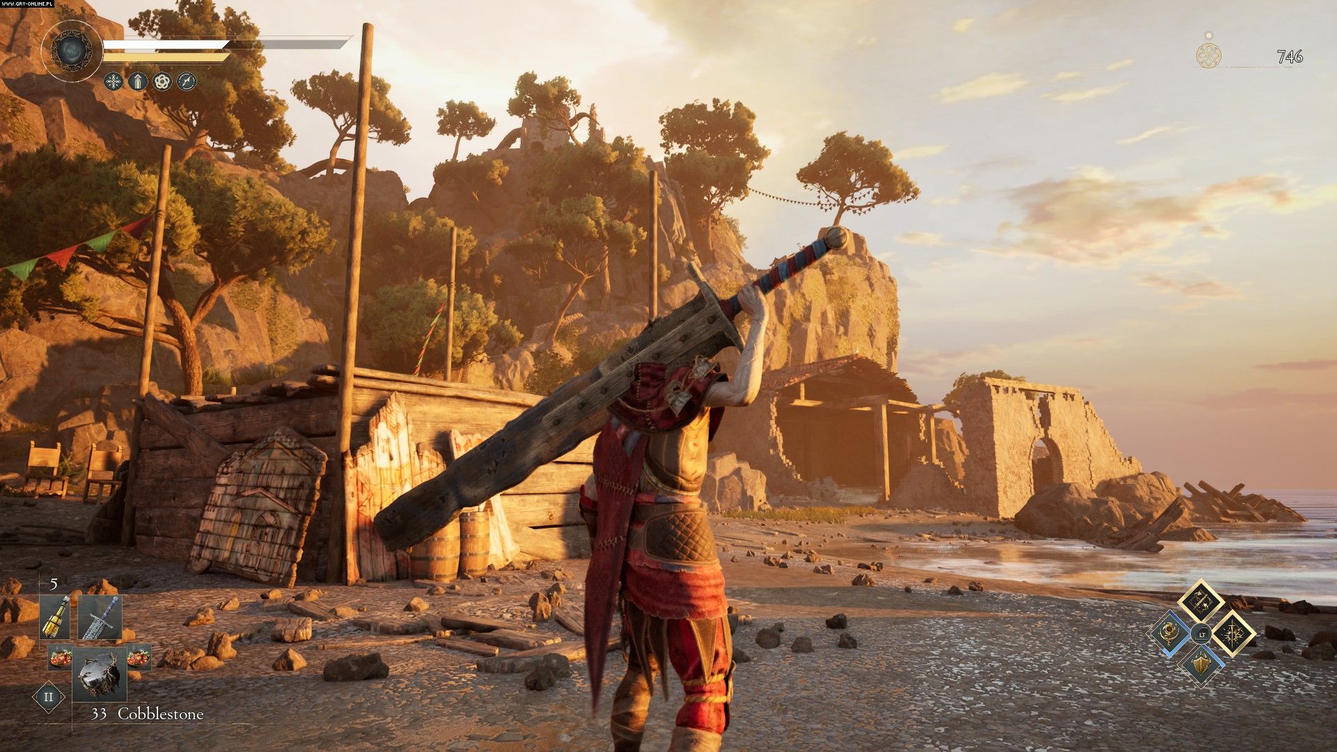 Z bronią mam mały kłopot. Jest jej sporo (twórcy zapewniają, że czeka nas 100 odmiennych rodzajów oręża, podzielonych na typowe kategorie), na razie nie spotkałem wprawdzie żadnej dystansowej i chyba takowych tu nie będzie, ale na ilość nie mogłem narzekać. Szkopuł w tym, że poszczególne egzemplarze w danej kategorii (np. wielkie miecze) nie robią szału pod względem różnorodności ruchów. Ładnie i efektownie wyglądają, mają niezłe animacje, ale w walce działają niemal tak samo. Jest to trochę rozczarowujące, ale może jeszcze znajdziemy na swej drodze jakieś wyjątkowe, wyróżniające się pakietem ruchów żelastwo.