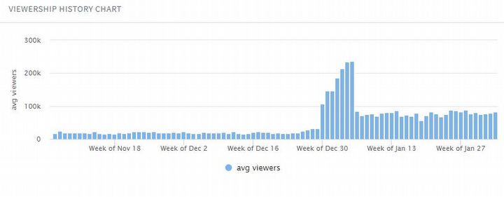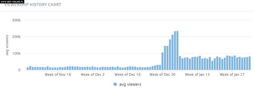 Zaglądając do statystyk oglądalności Escape from Tarkov na Twitchu możemy zauważyć, że owszem, po zakończeniu promocji popularność spadła, aczkolwiek od tamtego czasu utrzymuje się ona na średnim poziomie 70-80 tys. widzów, co w porównaniu do ostatnich miesięcy zeszłego roku jest wynikiem czterokrotnie lepszym. Co więcej, gra w styczniu była trzecią najchętniej oglądaną kategorią na Twitchu (ponad 68 mln obejrzanych godzin – wzrost o ponad 200%) i przebiła takie produkcje jak Fortnite czy GTA V.