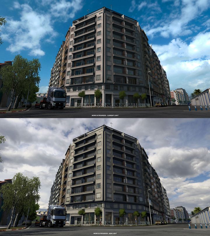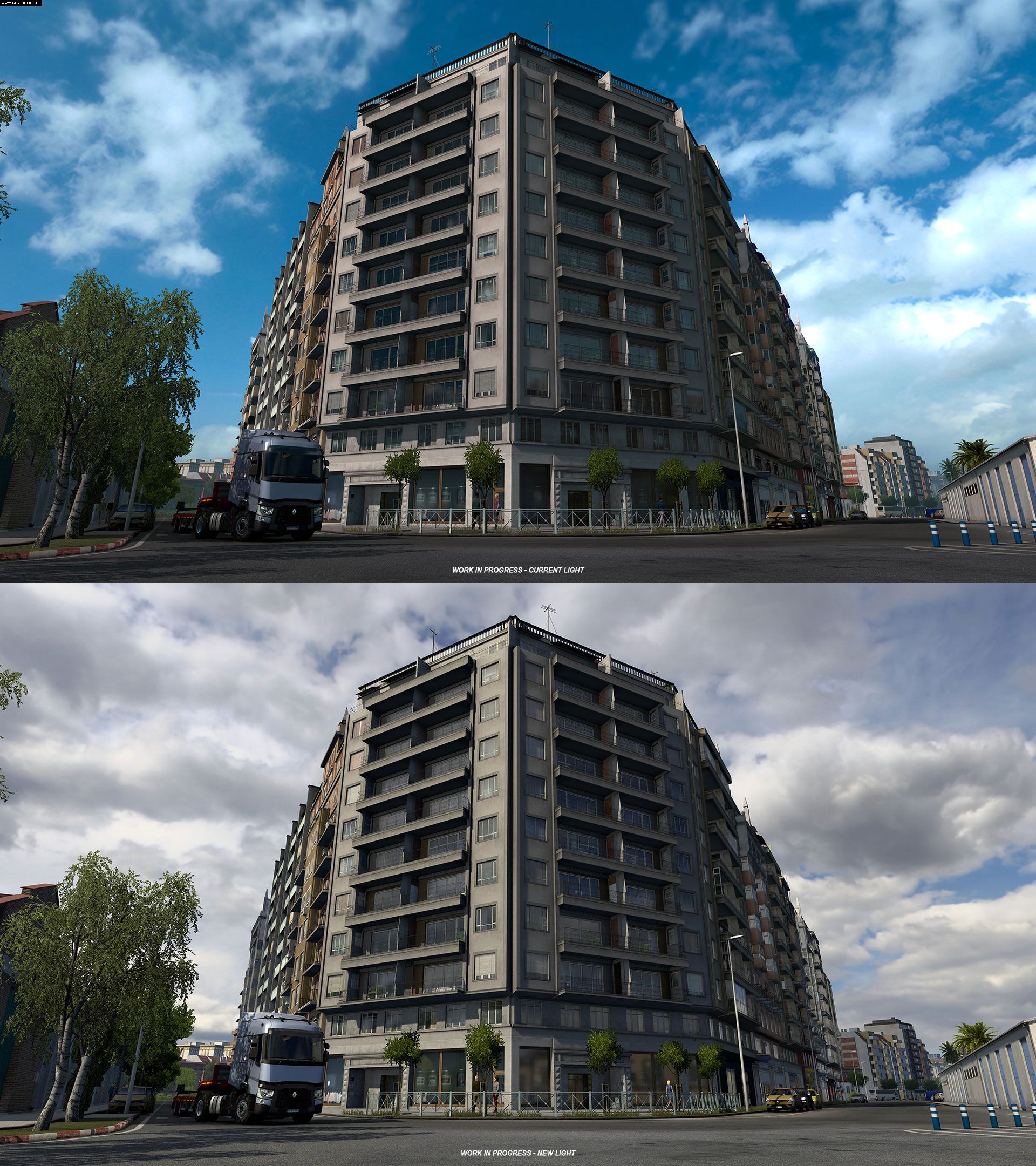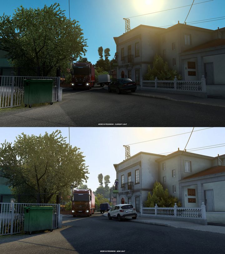 W przypadku ATS udało się częściowo uniknąć takiej sytuacji, gdyż wydany w zeszłym miesiącu dodatek American Truck Simulator: Colorado powstał z myślą o starym modelu oświetlenia.