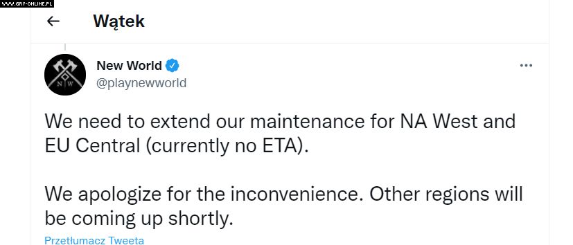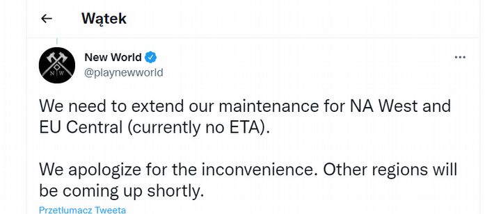 Amazon Games regularnie przeprowadza konserwację serwerów New World. Wielu graczy z Europy w środku dnia nie może wejść do gry, co prowadzi do irytacji. Niezadowoleni są również gracze z Australii.