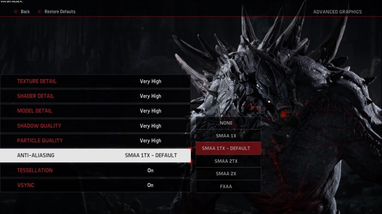 Co ciekawe, gra na starcie nie będzie oferowała wsparcia dla technologii SLI (czyli póki co nie liczcie na korzystanie z potencjału więcej niż jednej karty grafiki w Evolve). Oprócz tego deweloper opublikował screenshot z menu, pokazujący wszystkie opcje graficzne (nie licząc rozdzielczości, sięgających 4K), którymi będą mogli bawić się pecetowcy. Oto on: