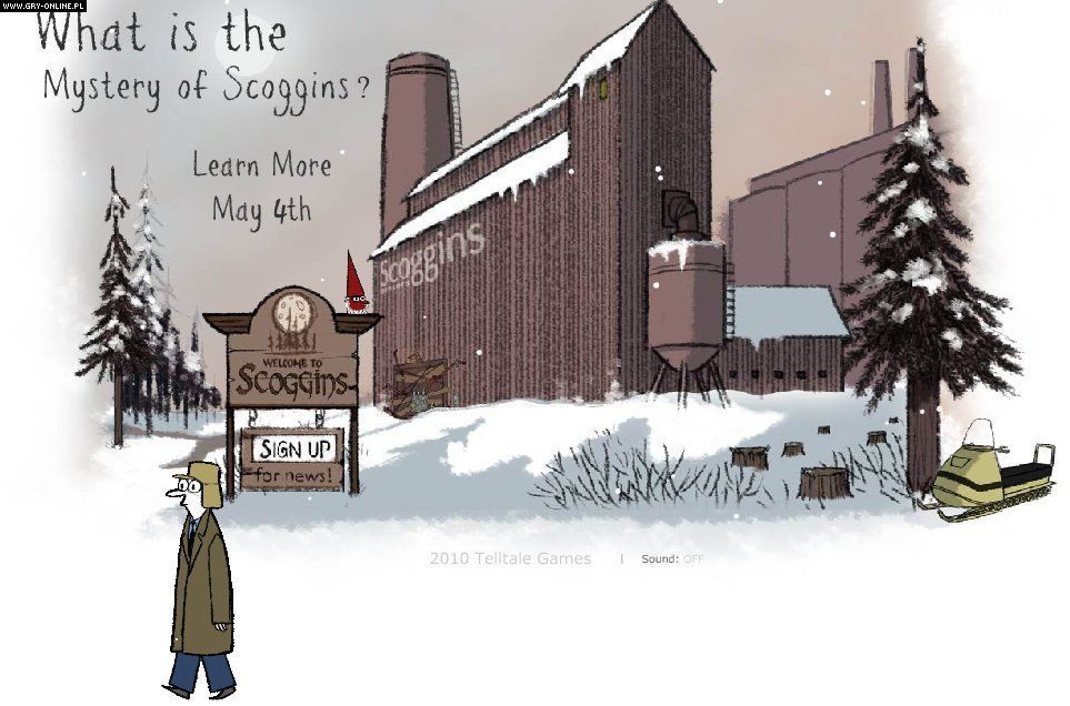 W chwili obecnej serwis nie jest jednak zbyt cennym źródłem sporej liczby informacji. Po załadowaniu się danych widzimy w tle sporych rozmiarów fabrykę Scogginsa, a także przemieszczającą się poniżej postać – być może głównego bohatera historii. Ponadto najeżdżając na kilka interaktywnych elementów strony internetowej naszym oczom ukazują się czerwone gnomy, które najwidoczniej są w jakiś sposób powiązane z zakładem.