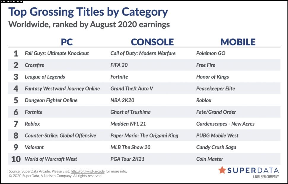 Raport wspomina też o sukcesach innych gier. W sierpniu Fortnite uzyskało o 76% większy przychód na komputerach osobistych i konsolach niż w lipcu. To z nawiązką wynagrodziło 62% straty na rynku mobilnym w związku z utarczką Epic Games z Apple oraz Google. Nie narzekają też twórcy Pokemon GO, bo mimo przymusowego pobytu graczy w domach mobilne Pokemony mają za sobą najlepszy miesiąc w historii. Studio Niantic szybko dostosowało grę do świata mierzącego się z epidemią koronawirusa, czego efekty było widać w poprzednich miesiącach. Wysokie przychody produkcji przełożyły się na wybitne wyniki rynku, który w tym roku wygenerował już 82,3 mld dol. przychodu (wzrost o 13% w porównaniu okresem styczeń-sierpień w 2019 r.).