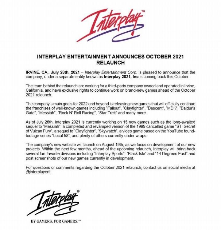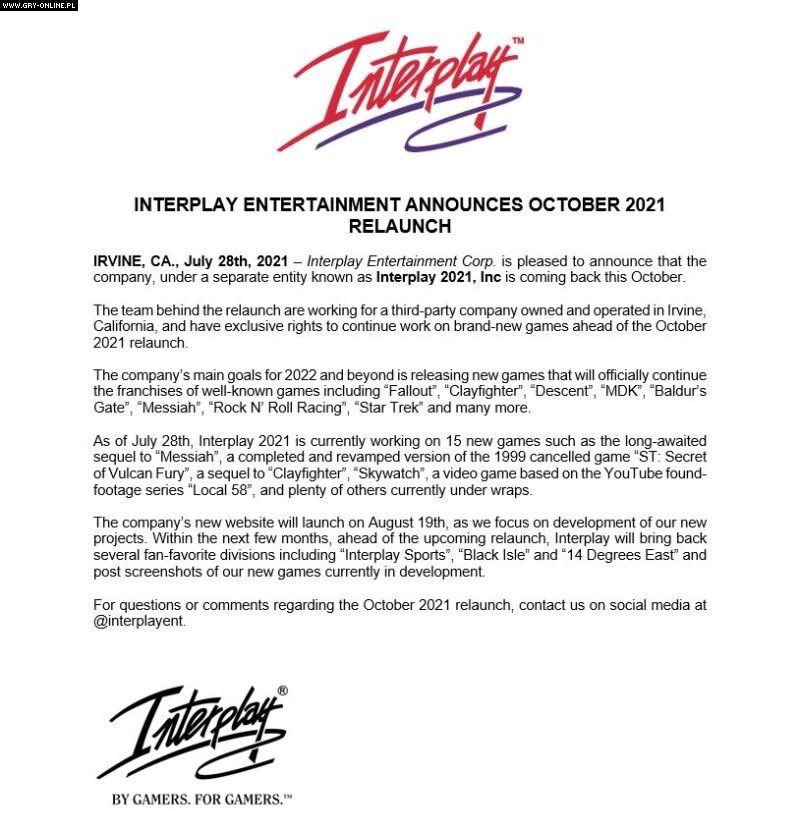 Powrót klasycznego Fallouta, MDK i wielu innych kultowych serii? Taką przyszłość zwiastował rzekomy powrót marki Interplay Entertainment. Niestety, przyszłość szybko zweryfikowała te obietnice.