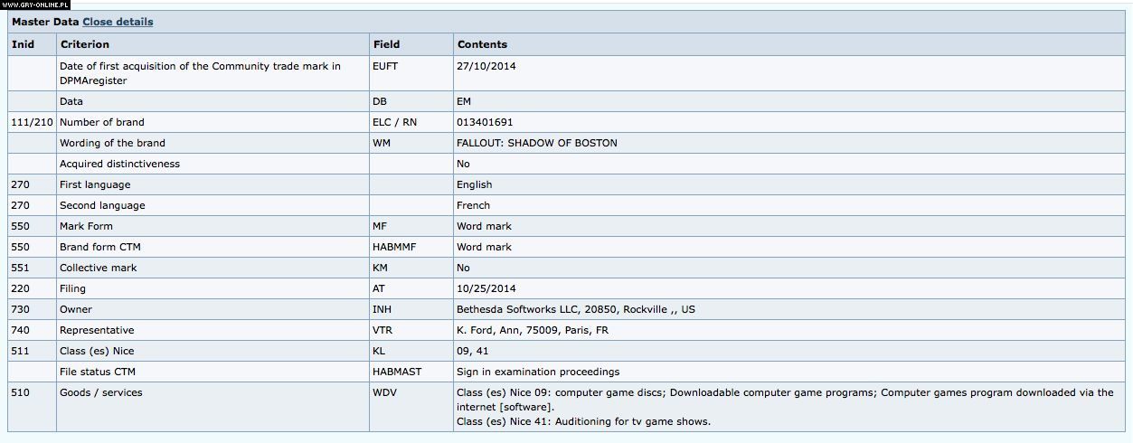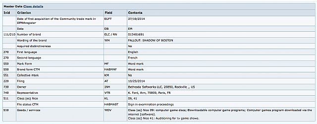 Fallout: Shadow of Boston – czyżby taki tytuł miała nosić kolejna odsłona popularnej postapokaliptycznej serii RPG? Jeden z użytkowników forum NeoGAF odkrył, że kilka dni temu firma Bethesda zarejestrowała w Niemczech nowy znak towarowy związany z Falloutem. We wniosku czytamy, że marka Fallout: Shadow of Boston związana jest z programami komputerowymi, a także telewizyjnymi. Dokumenty złożone zostały przez europejskiego reprezentanta Bethesdy.