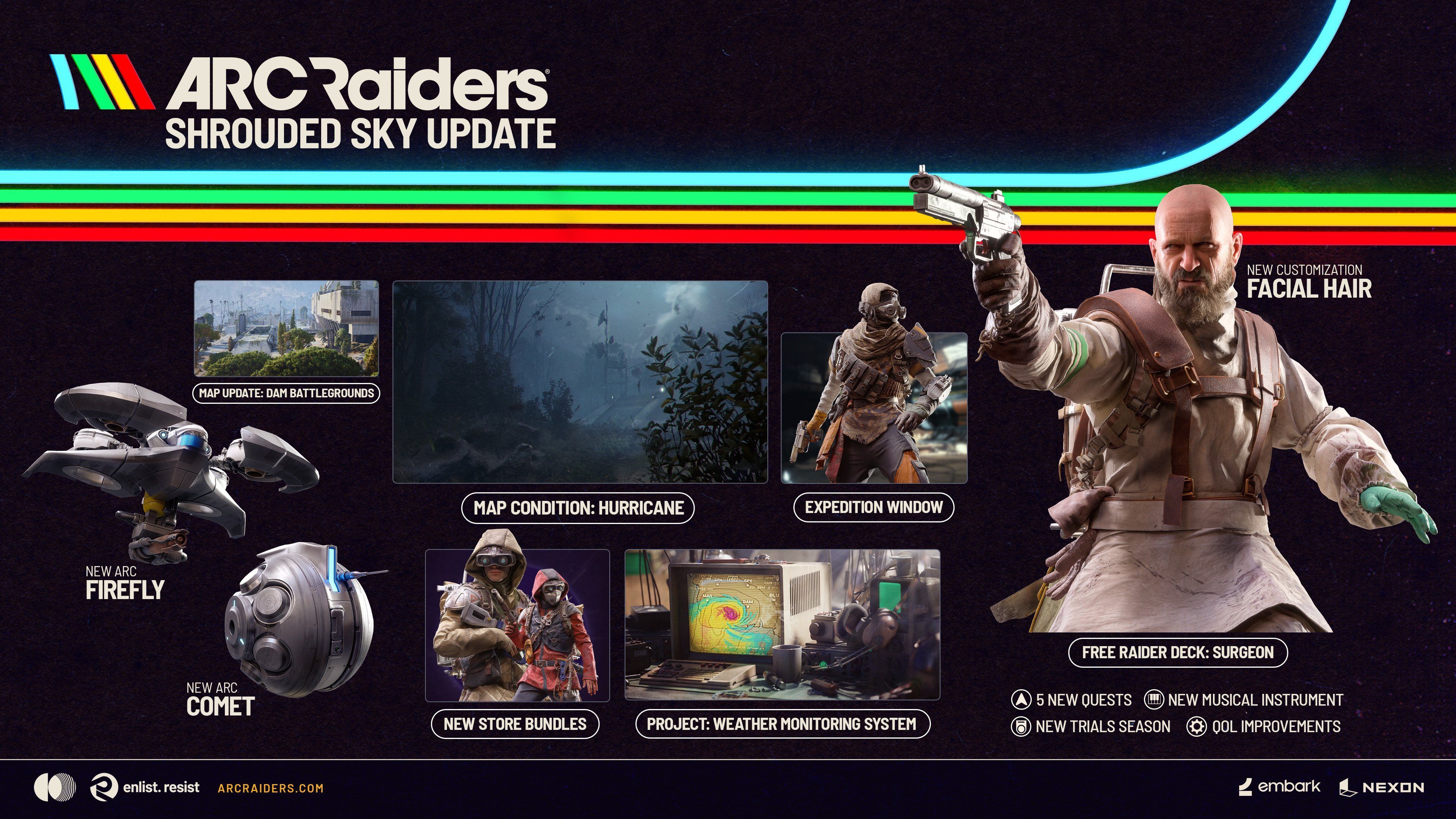 Aktualizacja Shrouded Sky trafiła do ARC Raiders. Najważniejsze nowości opisaliśmy w oryginalnej wiadomości, a resztę atrakcji znajdziecie na opublikowanej przez studio Embark grafice.