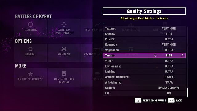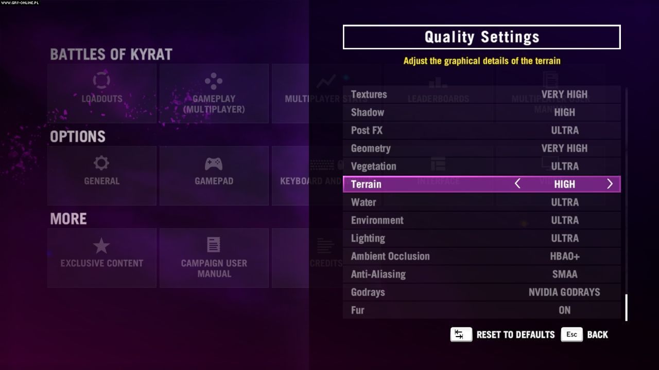 Osoby, które w najnowszą odsłonę popularnej serii sandboksów w konwencji FPS zagrają na komputerach osobistych, powinny zainteresować się również opcjami graficznymi, jakie będą mogły dostosować do możliwości swojego sprzętu. Tych jest stosunkowo sporo, jak na grę ze stajni Ubisoft, co widać na screenach krążących na forach internetowych. Posiadacze mocnych komputerów będą mogli pobawić się takimi ustawieniami grafiki, jak ambient occlusion, jakość roślinności czy futra u zwierząt.