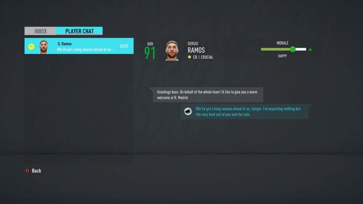 Kojarzycie denerwujące komunikaty najczęściej młodych zawodników, których morale spadało, gdy nie wystąpili w danym meczu? Istnieje szansa, że FIFA 20 zrezygnuje z tej irytującej mechaniki. Elektronicy zaprojektowali system indywidualnych rozmów z piłkarzami. Wszystko odbywać się będzie za pośrednictwem komunikatora - pomysł dobry i na czasie, bo przecież wszyscy wiemy, że Messi wysyła Valverde skład przed każdym meczem właśnie przez WhatsApp.