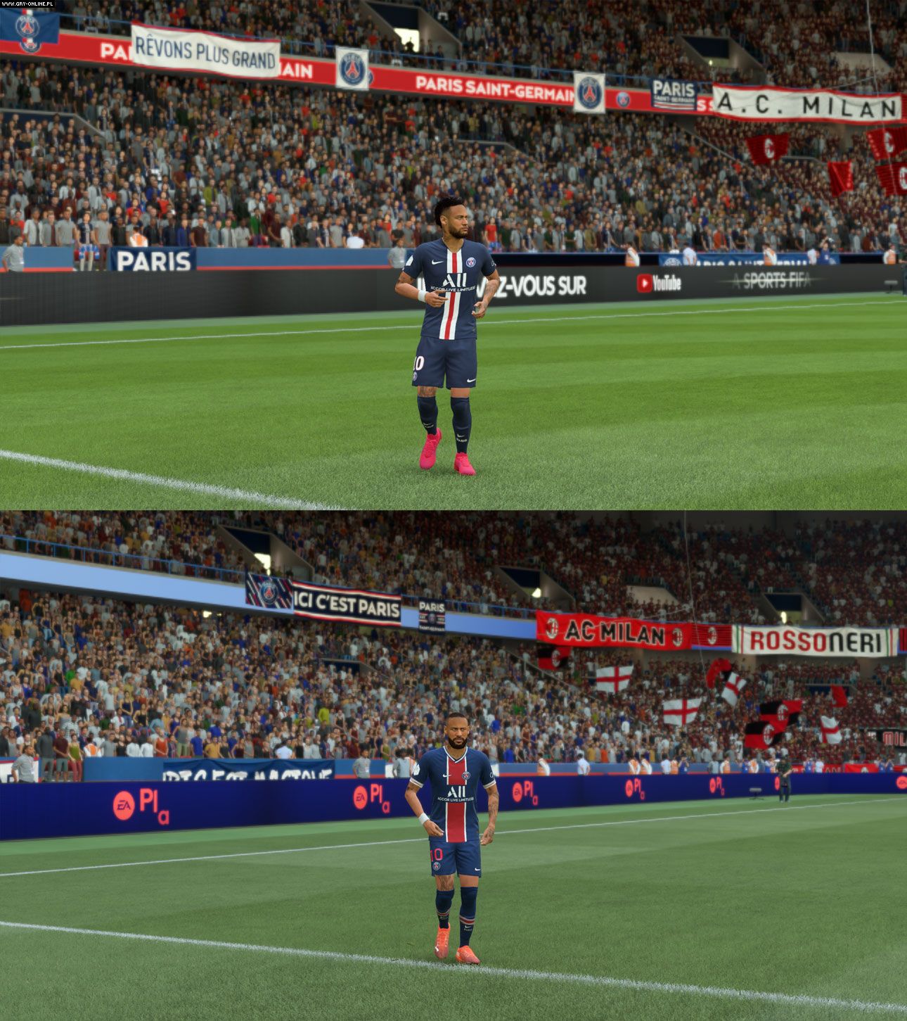 Użytkownik forum ResetEra o ksywce IIStellaRII opublikował screeny, porównujące oprawę wizualną obu produkcji na PC. Postarał się dobrać je tak, aby pokazywały podobne sceny i warunku pogodowe. Twierdzi on, że tegoroczna odsłona wygląda wyraźnie gorzej, ale po bliższym przyjrzeniu się tym obrazkom ta ocena jest raczej błędna. FIFA 21 ma bardziej stonowane kolory, przez co na pierwszy rzut oka może prezentować się mniej atrakcyjnie, ale poziom detali modeli i tekstur wydaje się być identyczny.