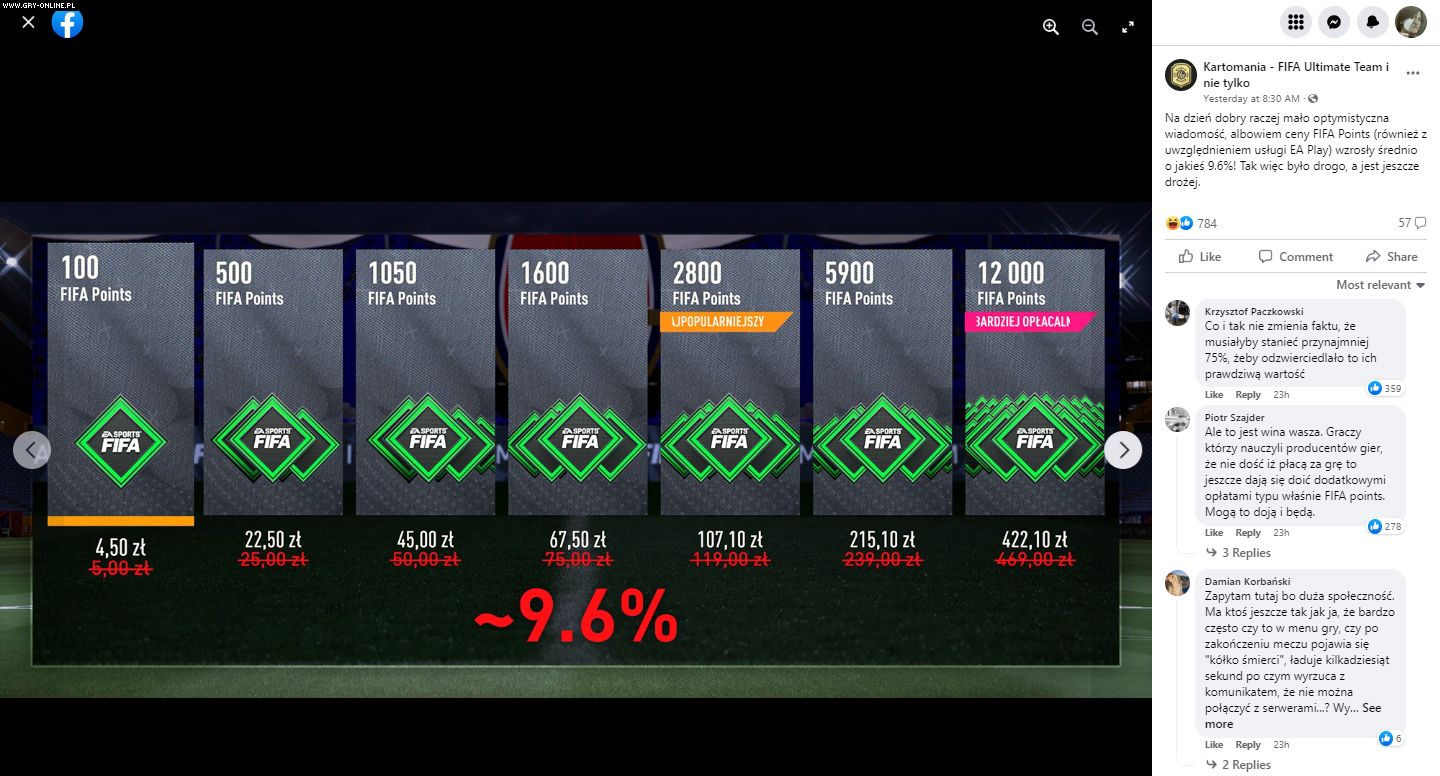 Inflacja zawitała także do piłkarskiej marki EA. Ceny wykorzystywanych w FUT punktów FIFA zostały mocno podniesione.