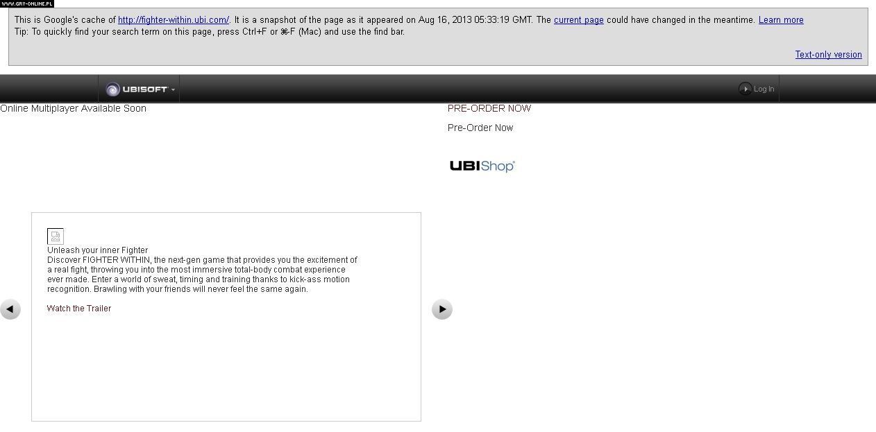 Dwa dni temu pisaliśmy o zarejestrowaniu przez firmę Ubisoft domen internetowych związanych z nazwą Fighter Within. Dziś, dzięki Google Cache, poznaliśmy pierwsze informacje na temat nowej produkcji francuskiego koncernu. Będzie to bijatyka wykorzystująca sensor Kinect z konsoli Xbox One.