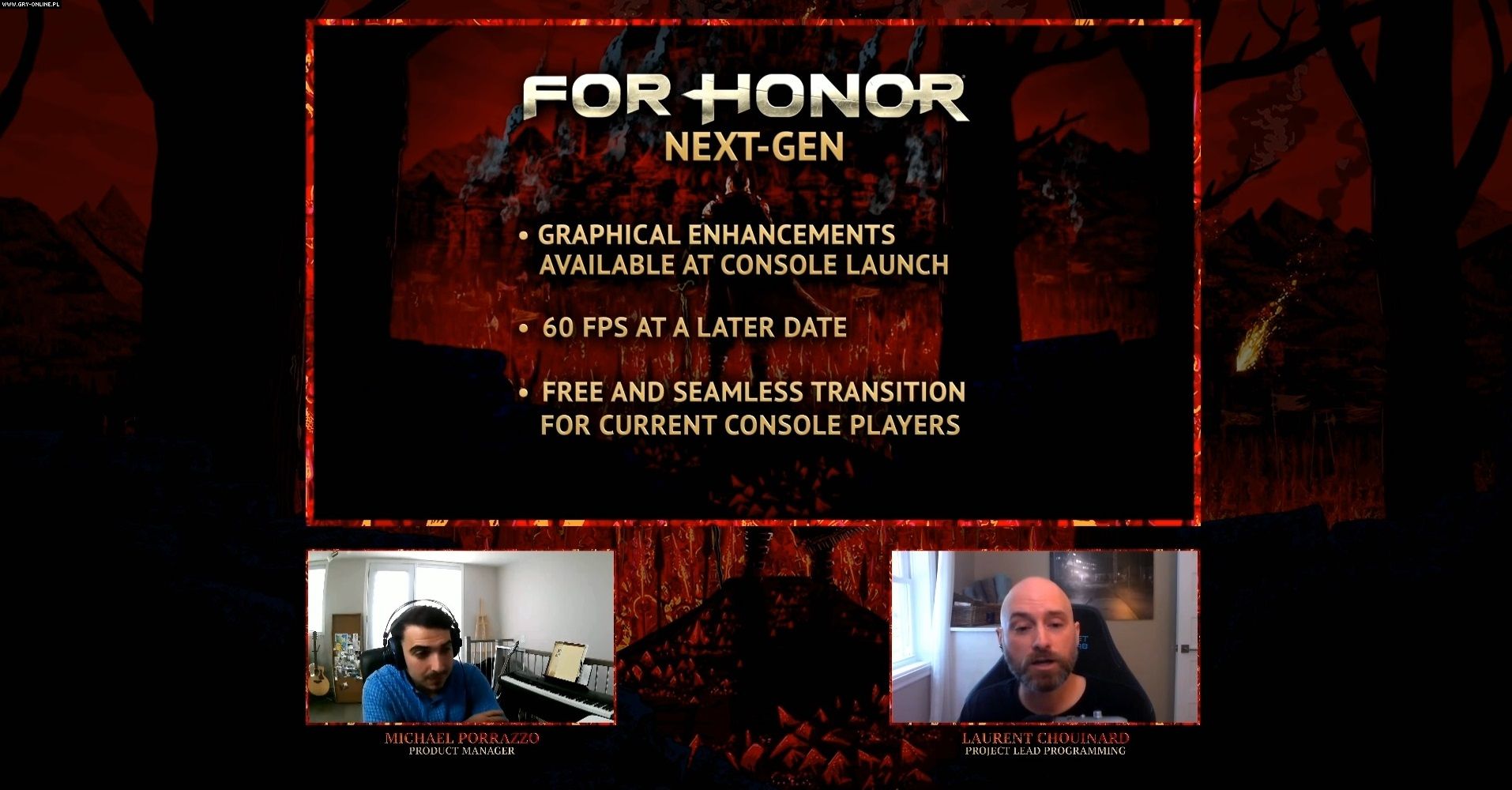 Jakiś czas temu dowiedzieliśmy się, że sieciowa strzelanka od Ubisoftu Tom Clancy's Rainbow Six: Siege będzie tytułem startowym dla konsol nowej generacji – PlayStation 5 i Xboksa Series X/S – a gracze będą mogli za darmo przenieść postęp między platformami. Dzisiaj poinformowano, że podobny zabieg będzie możliwy w sieciowej grze akcji For Honor. Produkcja doczeka się ulepszonych wersji przeznaczonych na nadchodzące urządzenia Microsoftu i Sony, które pojawią się już w dniu ich premiery. Otrzymają one pewne usprawnienia graficzne i będą obsługiwać rozdzielczości do 4K (Xbox Series S tylko do 1080p), a każdy gracz bezproblemowo i bezpłatnie przeniesie na nie swój dotychczasowy postęp. Poinformowano jednak, że wersje na nową generację konsol zaoferują stałe 60 klatek na sekundę dopiero początkiem grudnia, a nie na premierę.