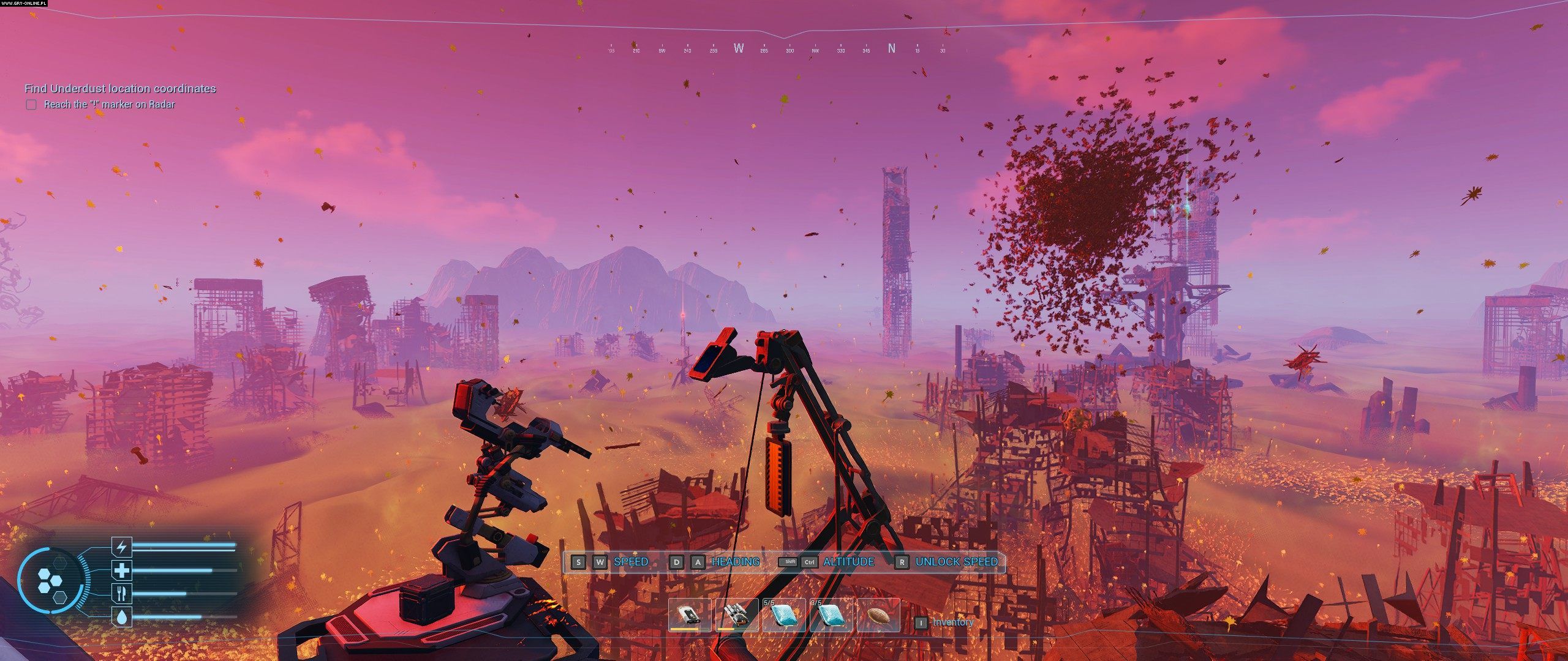 Po ocknięciu się w postapokaliptycznych ruinach, wśród wszechobecnego smogu o zapachu Krakowa, mój bohater przeskanował mnóstwo przedmiotów, podłapał jakiegoś wirusa, nauczył się, co można w tym świecie jeść i pić, a także zebrał tony surowców, by rozpocząć przygodę z craftingiem. W końcu udało się wybudować statek – futurystyczny sterowiec złożony z różnych modułów. A po zainstalowaniu turbiny można było nawet wzlecieć powyżej chmury smogu i zwiedzać dostępne platformy na ruinach drapaczy chmur, co zaczęło być bardzo wciągające, tylko że wtedy pojawił się napis: „Dziękujemy za zagranie w demo”…