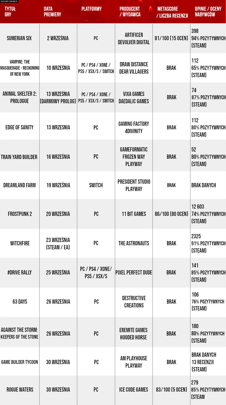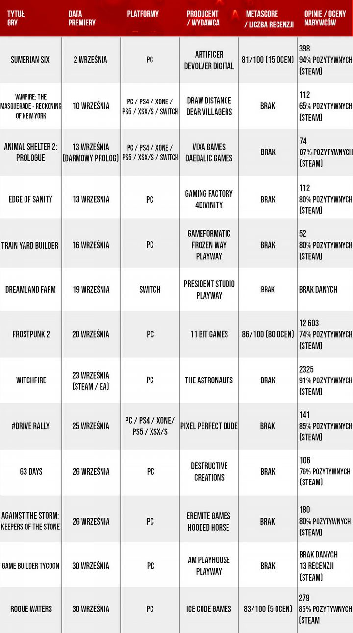 Frostpunk 2 był bez wątpienia największą polską premierą września, nawet jeśli nie do końca zadowolił fanów jedynki. Cieszy również ciepłe przyjęcie Witchfire na Steamie.