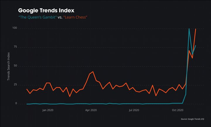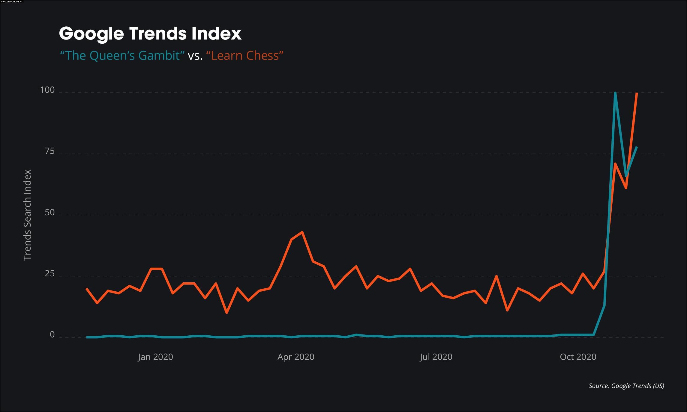 Internetowe statystyki mogą powiedzieć wszystko. Tym razem wynika z nich, że szachy zdobyły dużą popularność i „całkiem przypadkowo” zbiegła się ona w czasie z premierą serialu Netflixa pod tytułem Gambit królowej.