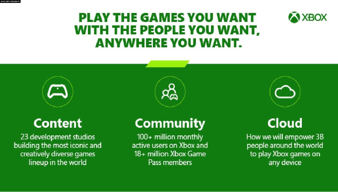 Krokiem w tym kierunku ma być udostępnienie w ciągu kilku najbliższych tygodni usługi Xbox Cloud Gaming wszystkim posiadaczom abonamentu Xbox Game Pass Ultimate. Będą oni mogli grać w wiele produkcji wyłącznie za pośrednictwem przeglądarek (Edge, Chrome i Safari) zarówno na PC, jak i telefonach czy tabletach. Ponadto jeszcze w tym roku Xbox Cloud Gaming ma zostać zaimplementowana bezpośrednio w aplikacji Xbox na PC i dostosowana tym samym do poziomu „doświadczenia konsolowego”. Dzięki temu będziemy mogli m.in. wypróbować określone tytuły przed ich pobraniem.