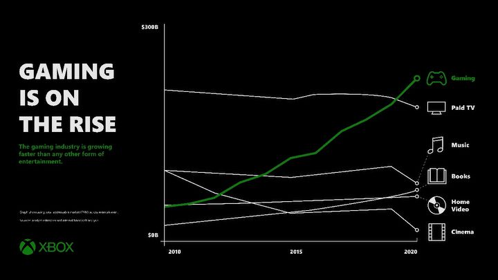 Słowa Spencera potwierdził dyrektor generalny Microsoftu, Satya Nadella, oznajmiając jednocześnie, że gaming to najszybciej rozwijający się segment branży rozrywkowej.