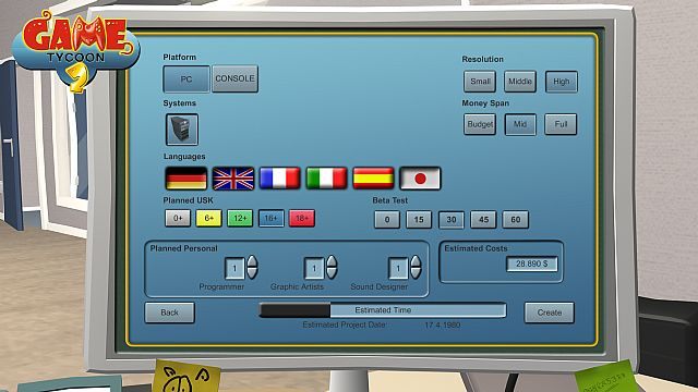 Podczas zabawy naszym zadaniem jest oczywiście głównie tworzenie dochodowych gier. Możemy zatrudniać i zwalniać pracowników, wybierać gatunki oraz platformy, jak również decydować na jakim aspekcie skoncentruję się deweloperzy. Zwłaszcza początkowo nasze studio jest zbyt biedne, aby mogło opracować produkcję dopracowaną pod każdym względem i konieczne jest podejmowanie trudnych decyzji. Trzeba także starannie dobierać wykorzystywane technologie. Wszystko to musimy oczywiście odpowiednio zbilansować pod względem finansowym, tak aby inwestycje przynosiły zysk, a konto nie świeciło pustkami.
