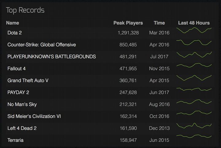 Według danych z platformy od Valve, 30 lipca w grze jednocześnie było zalogowanych ponad 481 tysięcy graczy. Pozwoliło to PlayerUnknown’s Battlegrounds wyprzedzić takie tytuły jak Fallout 4 czy Grand Theft Auto V. Co więcej, tytuł od Bluehole Studio Inc. stał się równocześnie najpopularniejszą grą na Steamie, która nie została stworzona przez firmę Valve.
