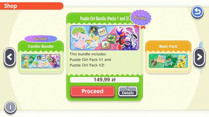 Nie wszystko w Pokemon Friends jednak zagrało, a w mojej opinii największym problemem jest sama monetyzacja gry. W wersji na platformę Switch gra kosztuje 42,50 zł, co w normalnych warunkach uznałbym za odpowiednią cenę. Niestety na tym wydatki się nie kończą. Jeżeli zależy nam na odblokowaniu pełni zawartości, zmuszeni będziemy do dokupienia dwóch DLC Puzzle On! Pack po 77 zł każdy (lub 129,80 zł w pakiecie). Zestawy dodatkowych zagadek, pluszaków i mebli błyskawicznie windują cenę całego pakietu do poziomu, który ciężko mi zaakceptować. Wciąż mówimy tutaj przecież o dość prostej grze logicznej.