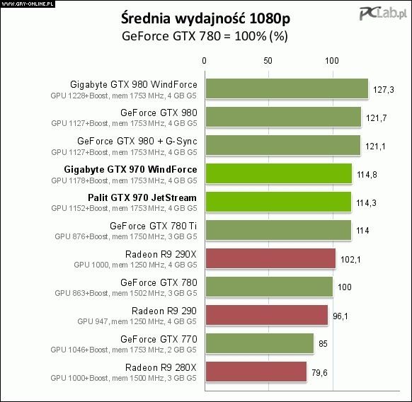 Firma Nvidia wypuściła dziś swoje nowe karty grafiki oparte na architekturze mikroprocesowej Maxwell – GeForce GTX 980 i 970. Wstępnie pisaliśmy o nich w zeszłym tygodniu (w tamtym newsie znajdziecie również informacje na temat samych parametrów kart), ale teraz ujawniono dodatkowe szczegóły. Generalnie nowe modele można opisać jako znacznie wydajniejsze, cichsze i oszczędniejsze, jeśli chodzi o pobór energii, niż konkurencyjne propozycje firmy AMD. Jasne, 980 to prawdziwy potwór i takaż jest jego cena sugerowana – 2399 zł. Miłą niespodziankę stanowi jednak GeForce GTX 970 – przy wydajności na poziomie Titana, kosztuje on zaledwie 1429 zł. Dla porównania, Radeon R9 290X – obecnie najmocniejsza pozycja od AMD – który jest wolniejszy, głośniejszy i słabiej znoszący podkręcanie, kosztuje około 1800 zł. Stosunek jakościowy omawianych modeli na tle konkurencji ładnie obrazuje test wydajnościowy przeprowadzony przez serwis PCLab: